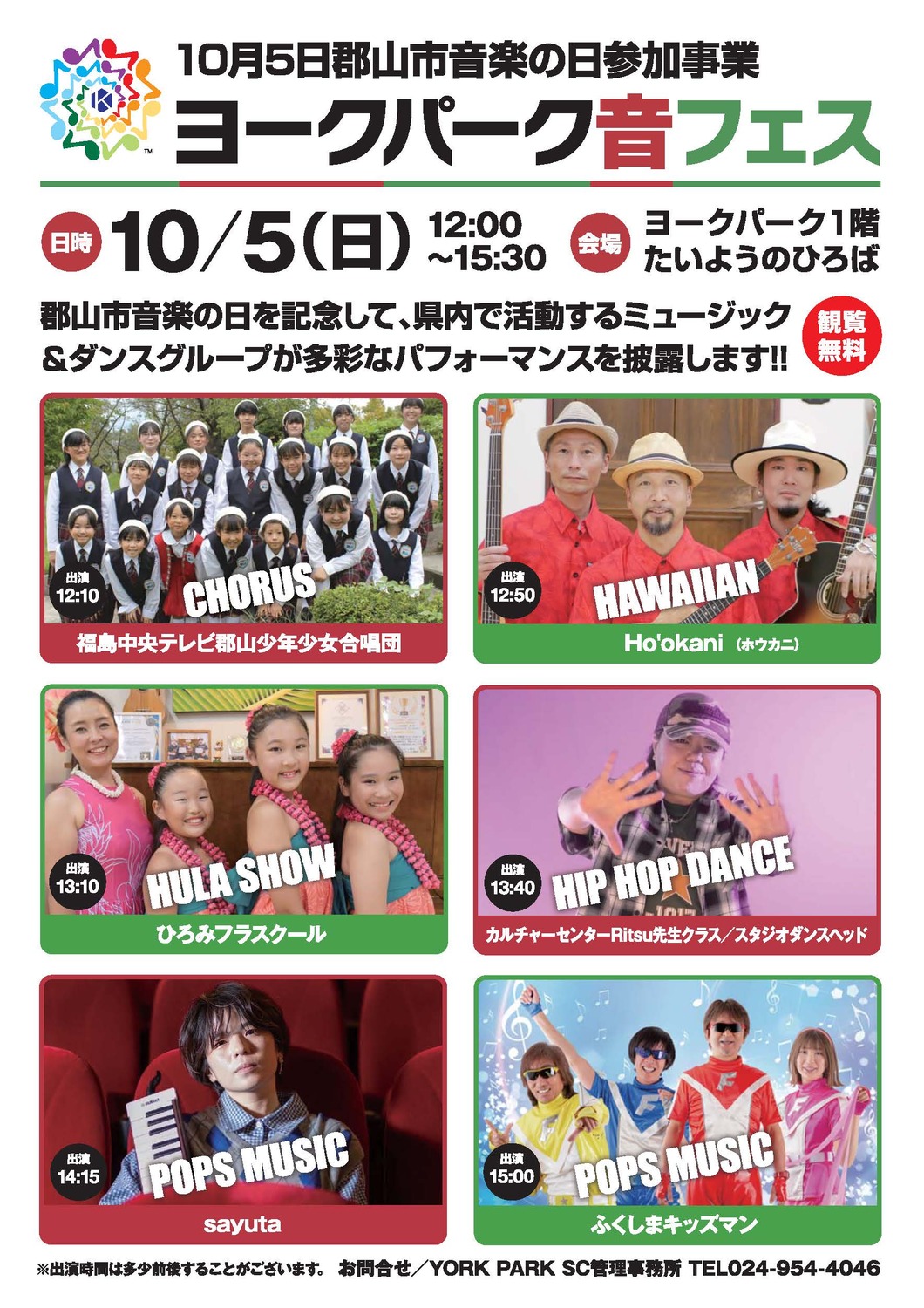 10/5(日)の音楽の日にヨークパーク1Fたいようのひろばで