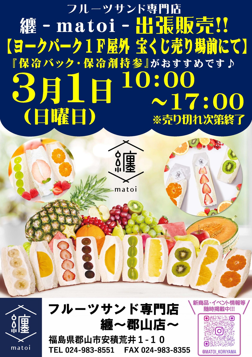 3/1(日)限定でフルーツサンド専門店「纏(まとい)」が出張販売!