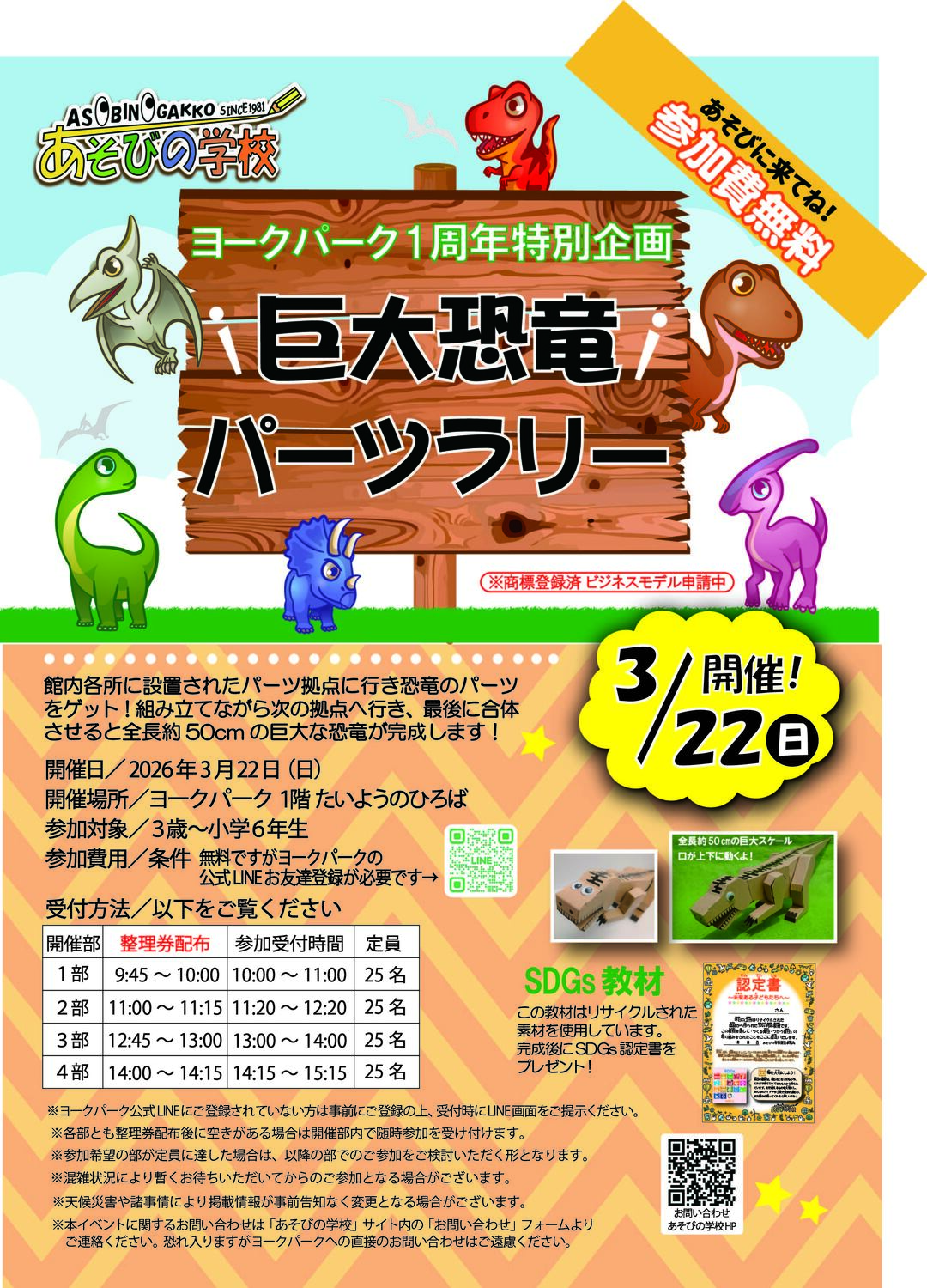 ※本イベントに関するお問い合わせはポスター内にございますQRコードから「あそびの学校」サイト内の「お問い合わせ」フォームよりご連絡ください。