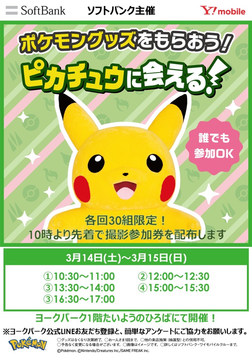 【ソフトバンク主催】ピカチュウ撮影会・テナント景品が当たる抽選イベント開催!
