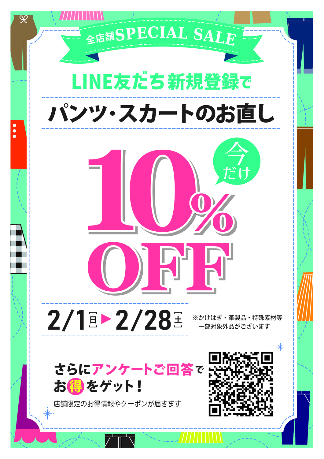 パンツとスカートのお直し料金から10%OFF実施中!!