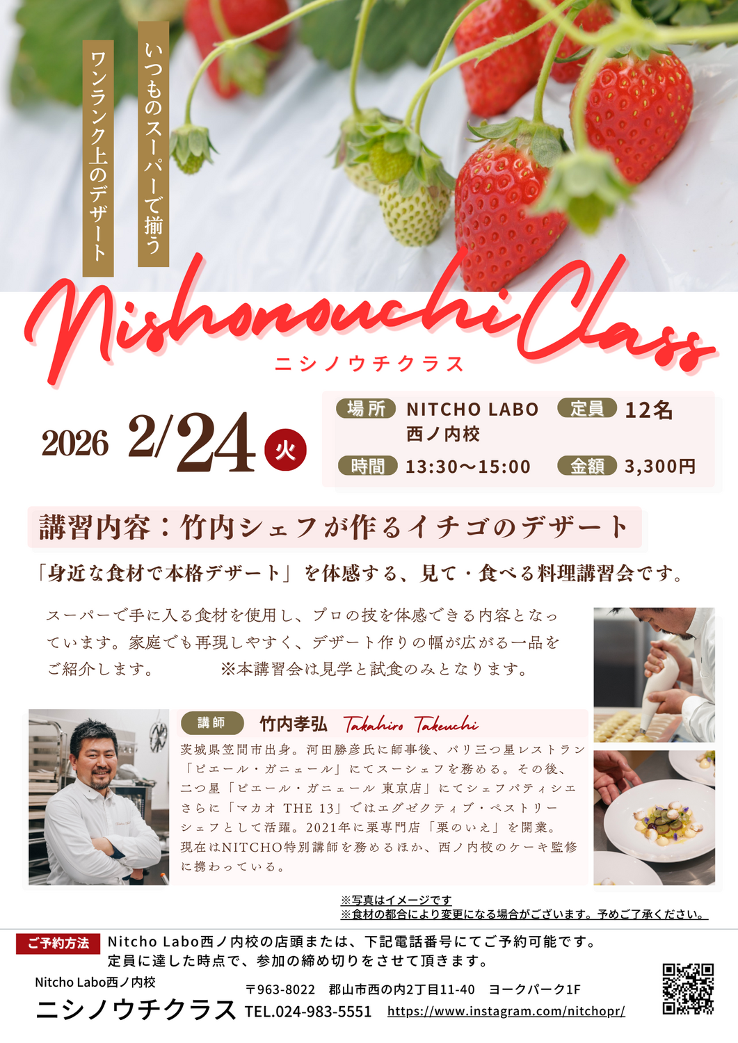 **Nishinouchi Class(ニシノウチクラス)**を2月24日に開催します。