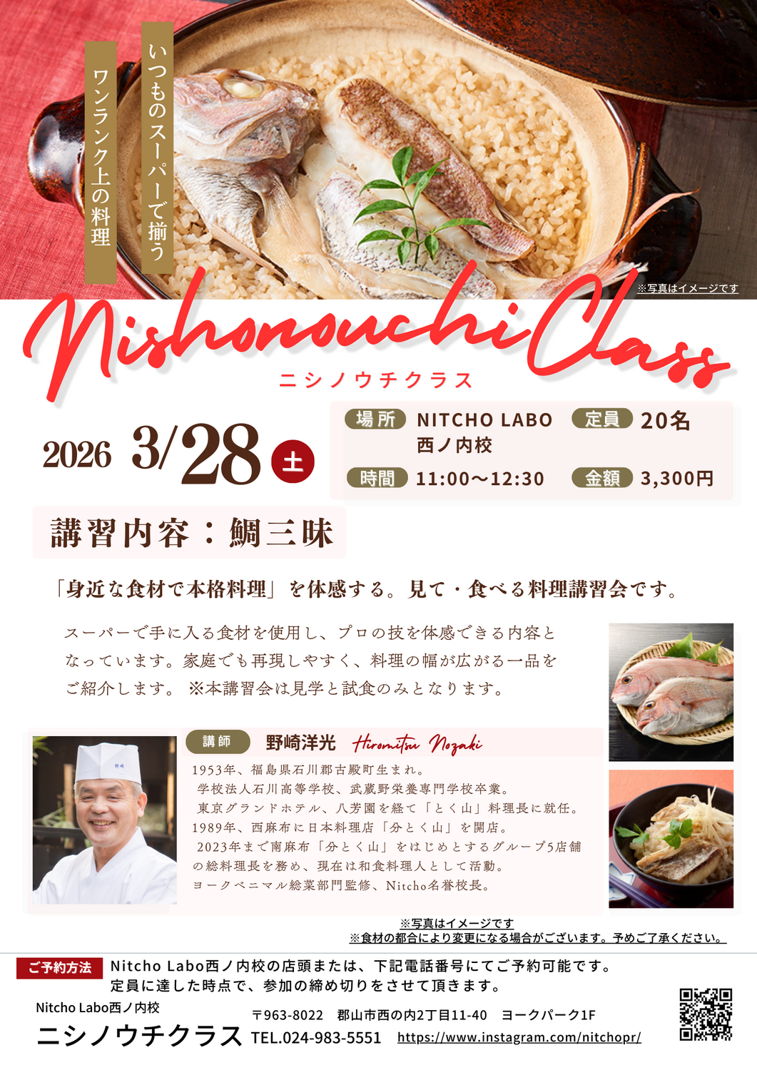 **Nishinouchi Class(ニシノウチクラス)**を開催します。
