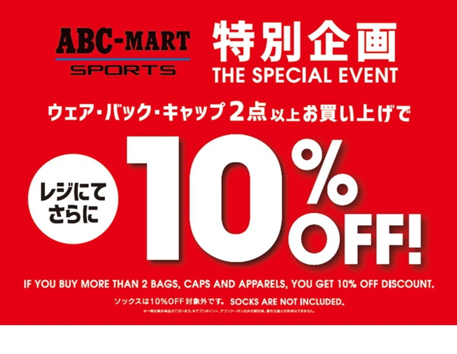 ウェア・バッグ・キャップのまとめ買いがレジにて10%OFFとなります!!